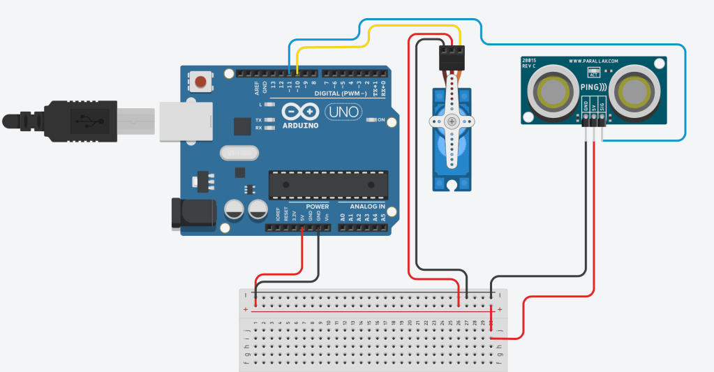 Currently I have created 2 different circuits to incorporate into this trashcan. I have developed one to detect a person approaching the trashcan so the lid will open automatically and I have created another that monitors the level of trash in the bin and signals for when the bin is full